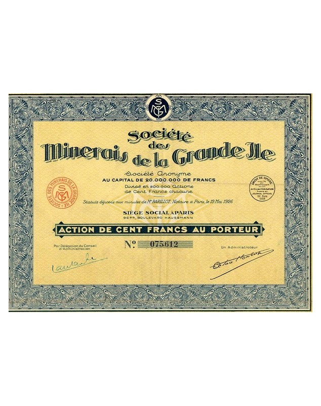 Document signed by Octave Homberg (1876-1941), administrator of the Company, diplomat, historian and French financier, member of Foreign Affairs cabinets, also secretary and administrator of the Bank of Indochina, creator of the Société Financière Française et Coloniale (SFFC) in 1920, then Crédit Foncier de l'Indochina in 1923 and president of numerous French companies with activities in the colonies.
