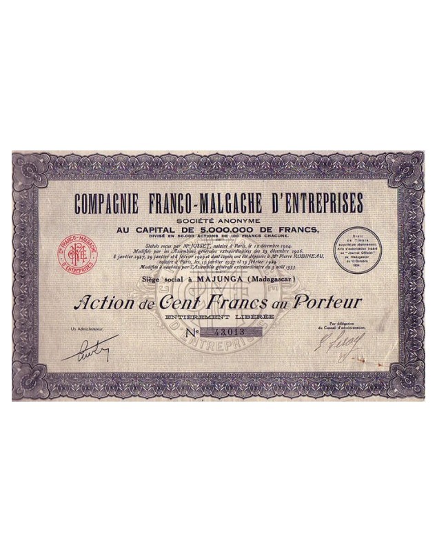 Compagnie Franco-Malgache d'Entreprises, Head office in Majunga