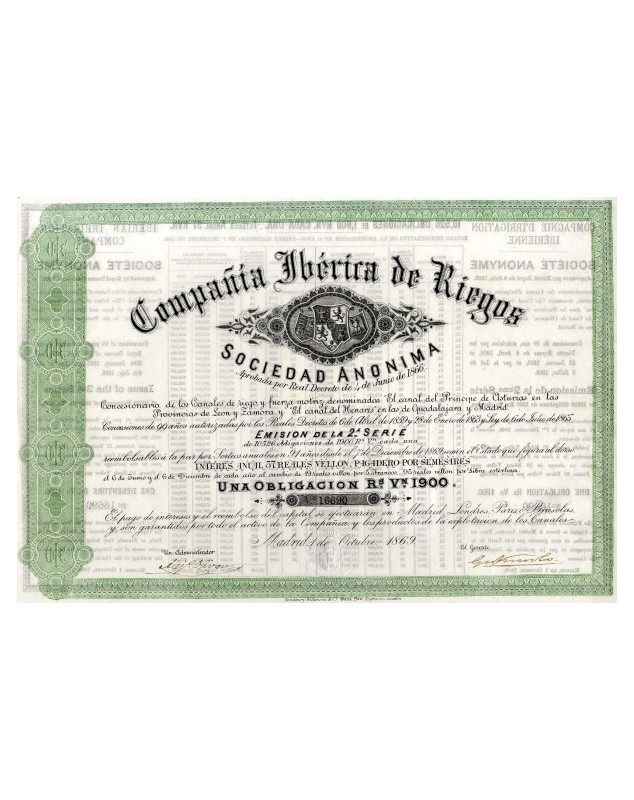 Bond of Rs. Vn. 1900 issued in Madrid in 1869.