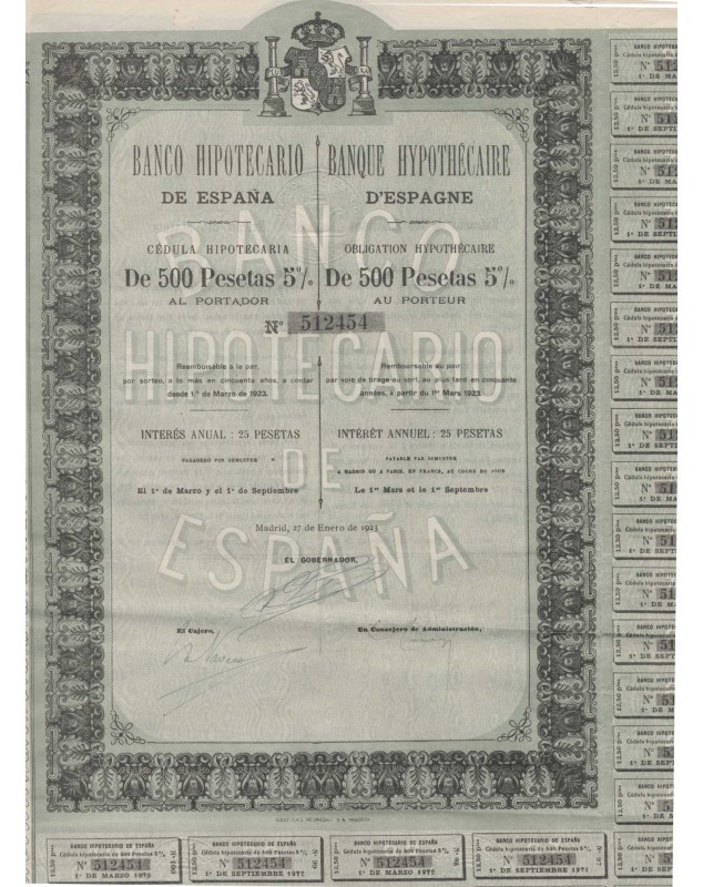Bond of 500 Pesetas 5% issued in Madrid in 1923.