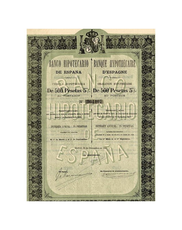 Bond of 500 Pesetas 5% issued in Madrid 1920.