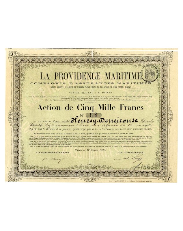 Share of 5000F - Paris 1869. Rare (240)