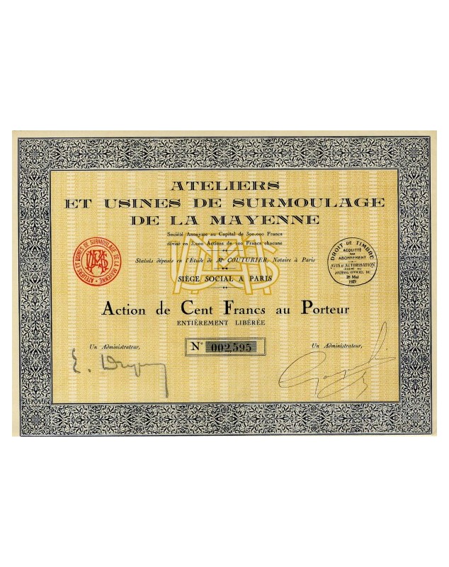 Share of 100F - Paris 1929