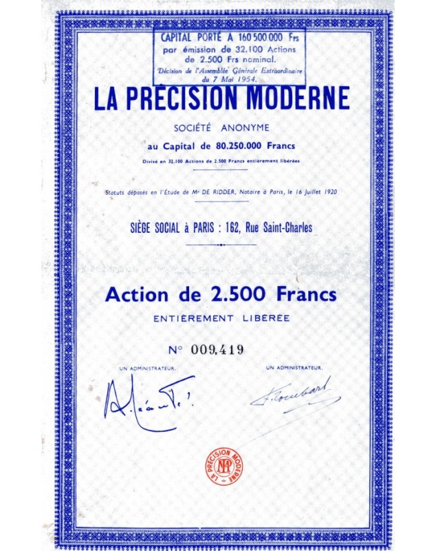 Share of 2,500F - Paris 1920
