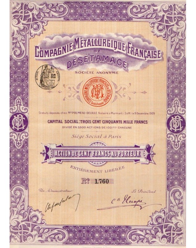 Share of 100f - Paris 1909