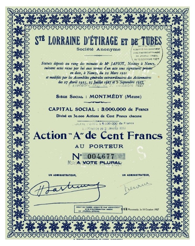 ''A'' Share of 100F - Montmédy (Meuse) 1927