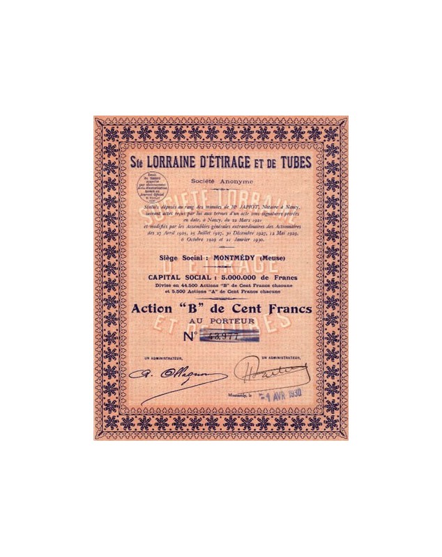 Share ''B'' of 100F - Montmédy (Meuse) 1930