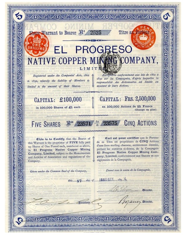 El Progreso Native Copper Mining Co. Ltd.
