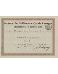 Company incorporated in 1910 with a capital of 10 million francs. Head office at 8 rue Pillet-Will in Paris.