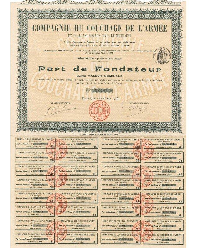 Founder share of the Army Sleeping and Civil and Military Laundry Company.
