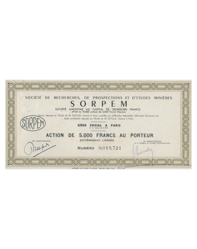 Share of 5000F - Paris 1955