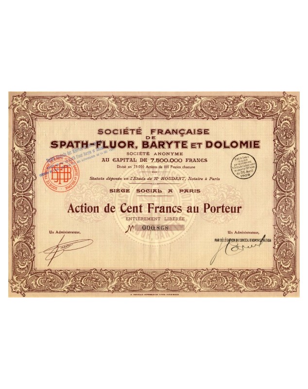 Sté Française de Spath-Fluor, Baryte et Dolomie