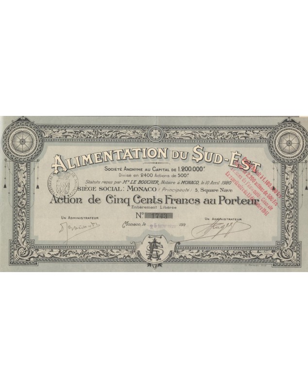 Capital 1,200,000F - with stamp of capital decrease of 1941