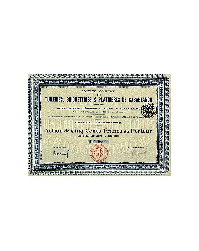 Sté Anonyme des Tuileries, Briqueteries & Plâtrières de Casablanca