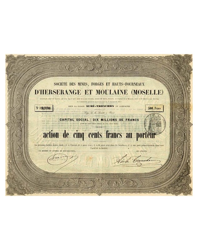 Société des Mines, Forges et Hauts-Fourneaux d'Herserange et Moulaine (Moselle), Aubé-Tronchon et Cie
