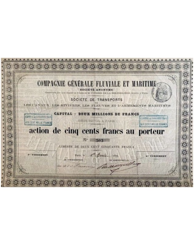 Share of 500F - Paris 1879