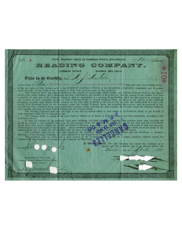 Cert. of 10 Shares of 50$ each - New York 1897 - Cancelled