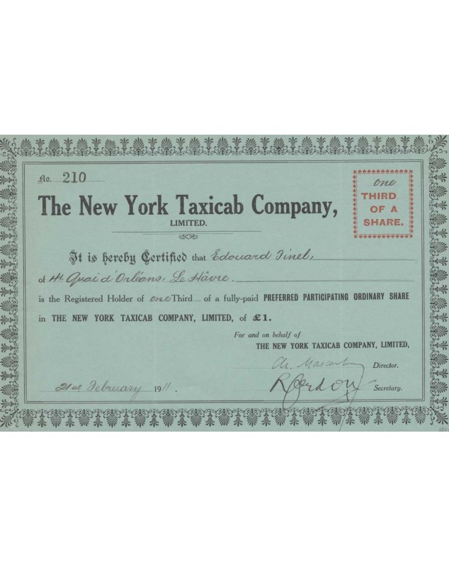 Certificate of a third of 1 Share of 1£ - New York 1911