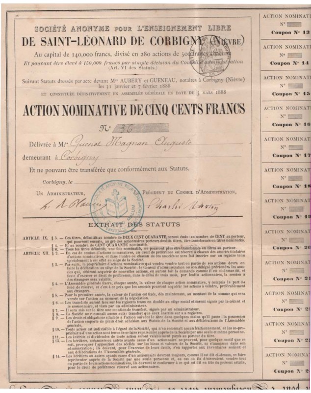 Sté pour l'Enseignement Libre de Saint-Leonard de CORBIGNY (Nièvre)
