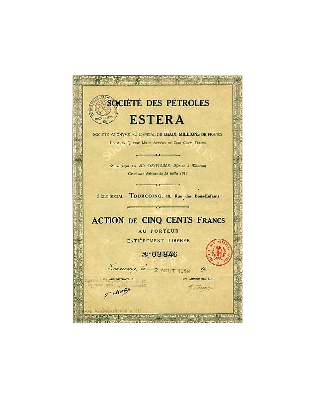 Company linked to the Société des Pétroles d'Estera and the Société Industrielle de Pologne (SIP) and the Société des Pétroles Milano,, all founded by a group of textile manufacturers from Tourcoing.