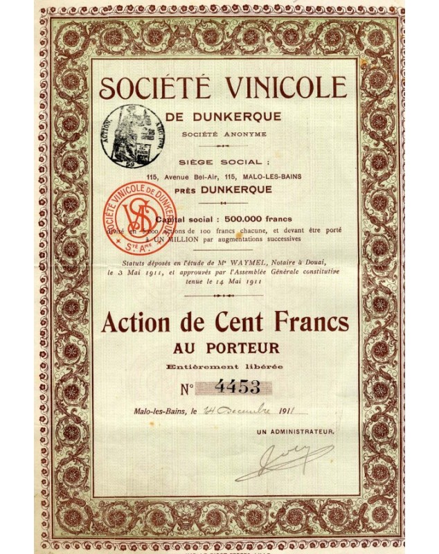 Issue 5Share of 100 francs issued in Malo-les-Bains, Dunkerque in 1911.