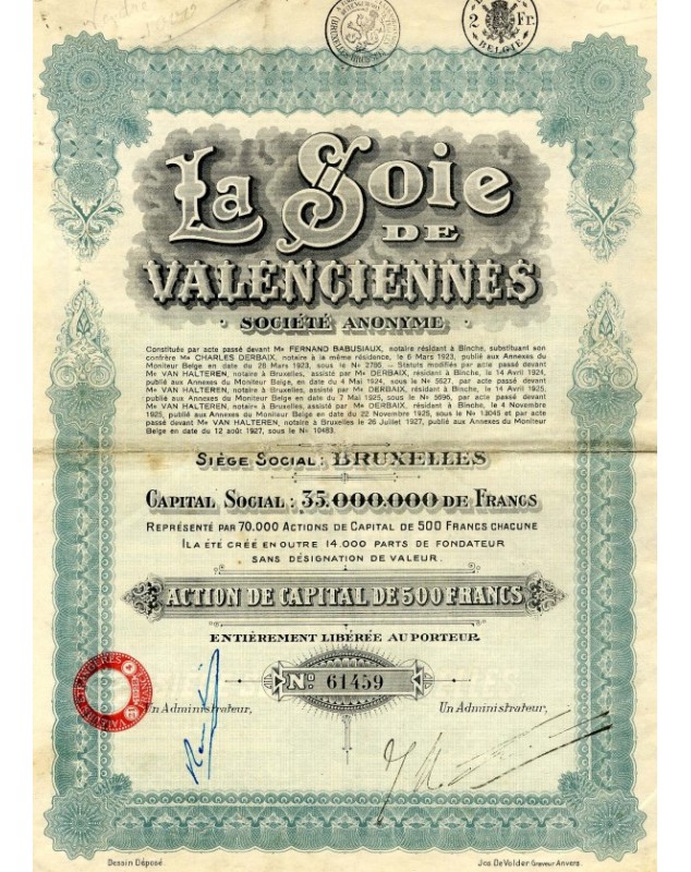 Capital Share of 500 - Brussels 1927