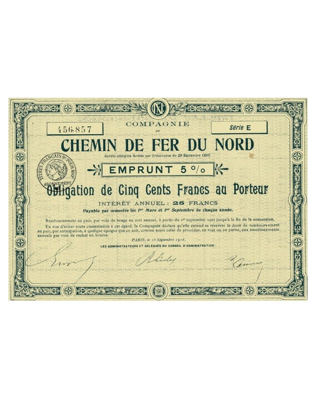 Cie du Chemin de Fer du Nord - 5% Loan 1916, Serie E