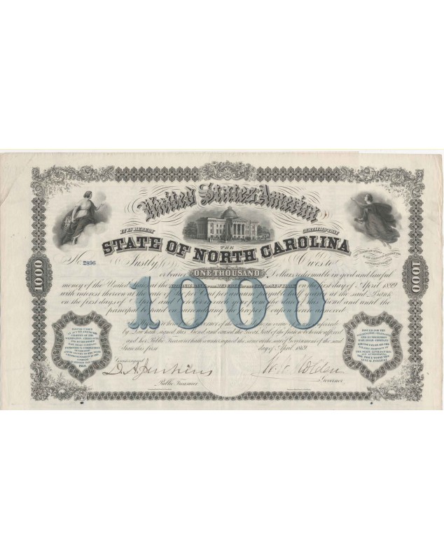 State of North Carolina - 1000$ 6% Bond 1969 (Wilmington, Charlotte and Rutherford Rail Road Company)