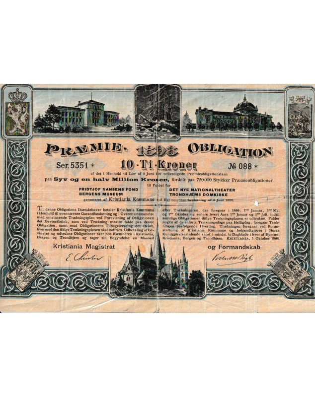 Praemie-Obligation of 10 Kronen - Kristiana (Oslo) 1898