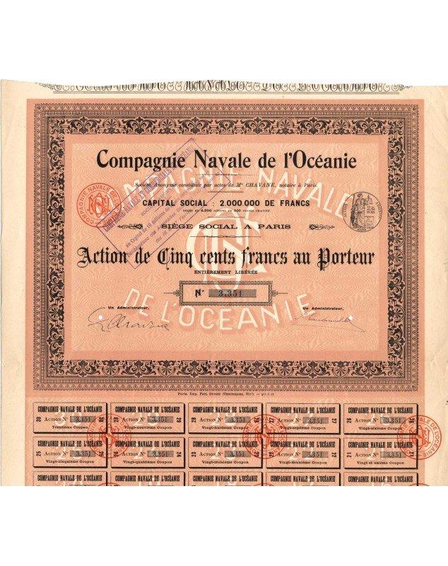 Formerly the Société des Voiliers de Nouméa, bringing together the owners of Maison Ballande, the company took the name of Cie Navale & Commerciale de l'Océanie in 1928, itself liquidated in 1929.