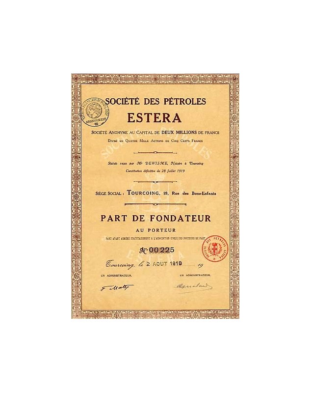 Company linked to the Société des Pétroles d'Estera and the Société Industrielle de Pologne (SIP) and the Société des Pétroles Milano,, all founded by a group of textile manufacturers from Tourcoing.