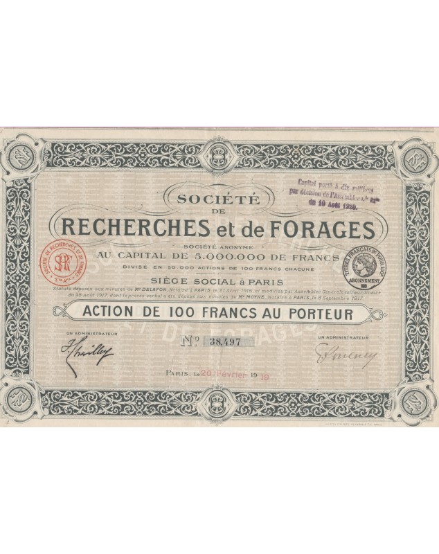 Share of 100F - Paris 1919