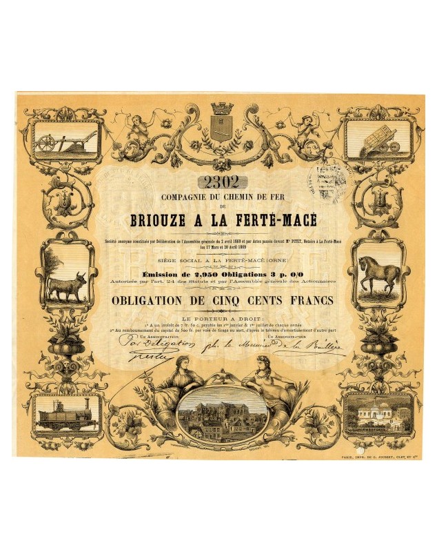 Bond of 500 francs issued in La Ferté-Macé (Orne) in 1869.