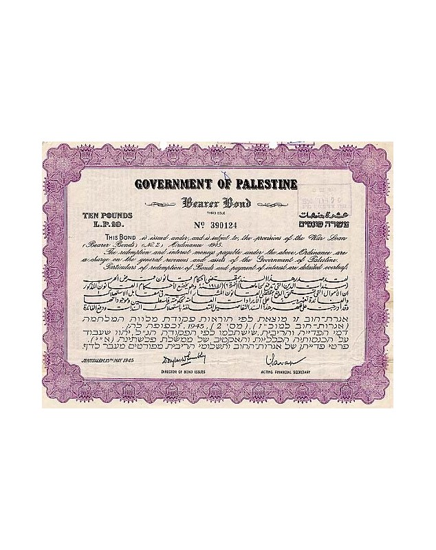 Bond of 10£ - Jerusalem 1945