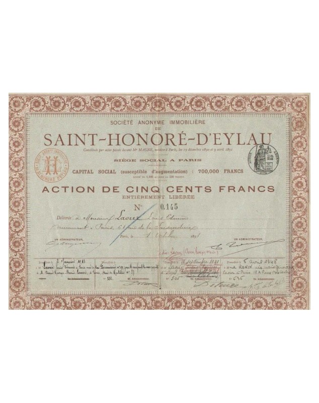 Share of 500F - Paris 1891