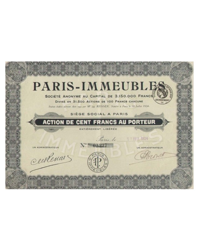 Share of 100F - Paris 1924