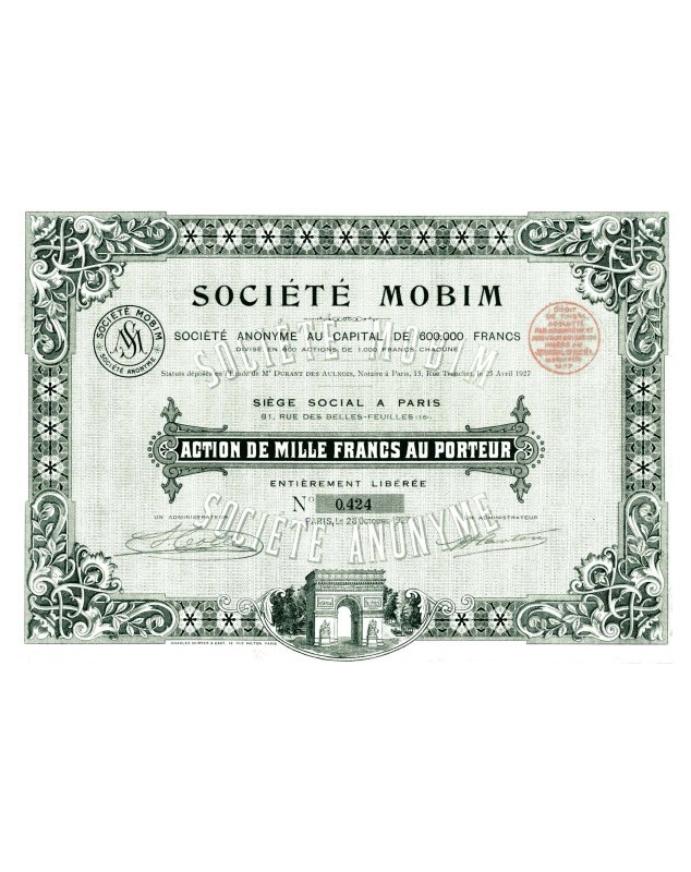 Share of 1000F - Paris 1927.
