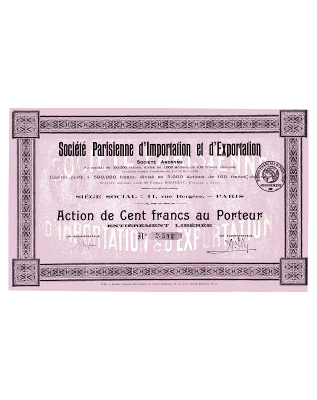 Share of 100f - Paris 1918