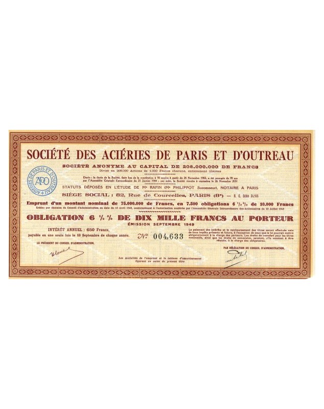6,5% Bond of 10000F - Paris 1949