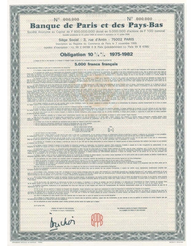 Bond of 10 1/4% of 5000F - Paris 1975-1982