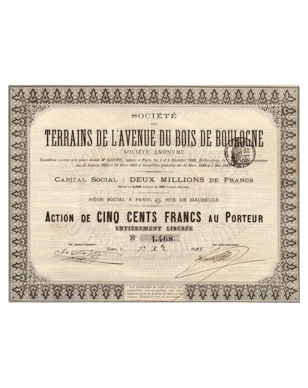 Sté des Terrains de l'Avenue du Bois de Boulogne
