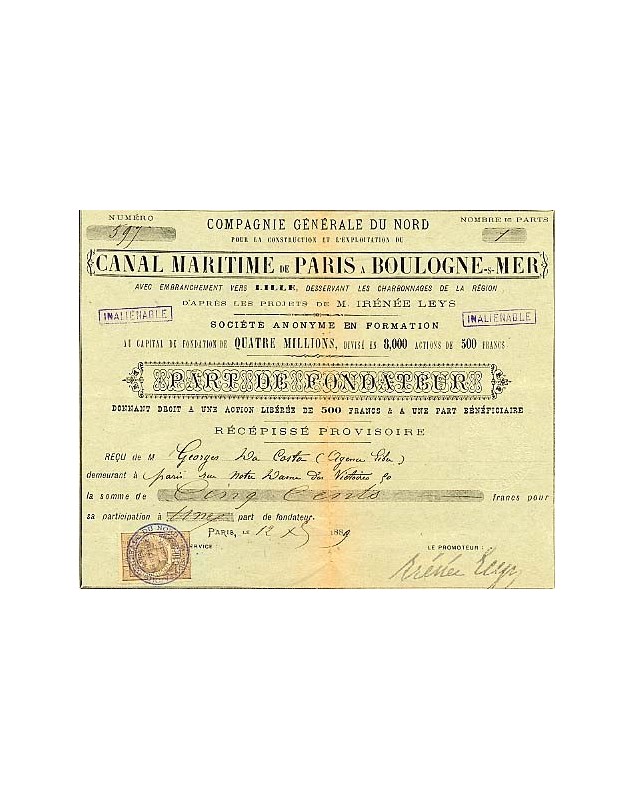 Cie Générale du Nord pour la Construction du Canal Maritime de Paris à Boulogne-sur-Mer