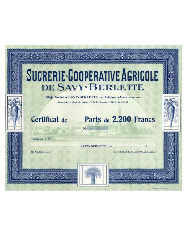 Cert. of 2200 F shares -Savy-Berlette 1948 - Unissued