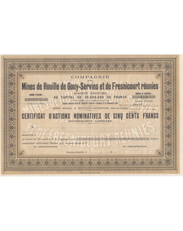 Cie des Mines de Houille de Gouy-Servins et de Fresnicourt Réunis