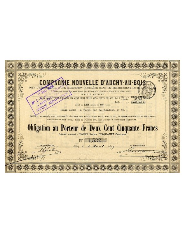 Bond of 250F - Paris 1879