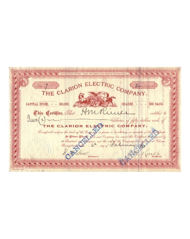 Cert. of 2 Shares of 50$ each - Pennsylvania 1913