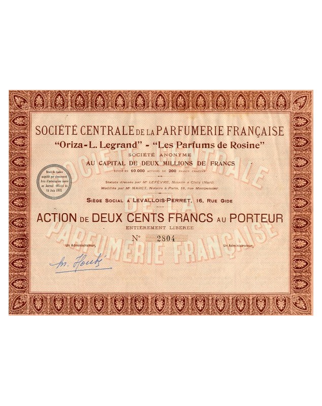 Sté Centrale de la Parfumerie Française''Oriza-L.LEGRAND'' - ''Les Parfums de Rosine''