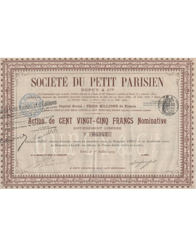 The Petit Parisien newspaper was founded by Louis Andrieux in 1876 and taken over in 1844 by Jean Dupuy. Very popular until the end of the First World War, the newspaper, transformed during the Second World War into a propaganda tool, was suspended.