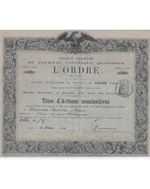 Sté du Journal Politique Quotidien L'Ordre de Paris