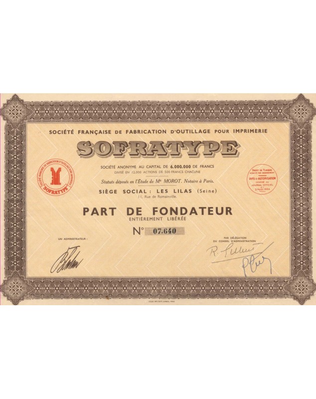SOFRATYPE Sté Française de Fabrication d'Outillage pour Imprimerie